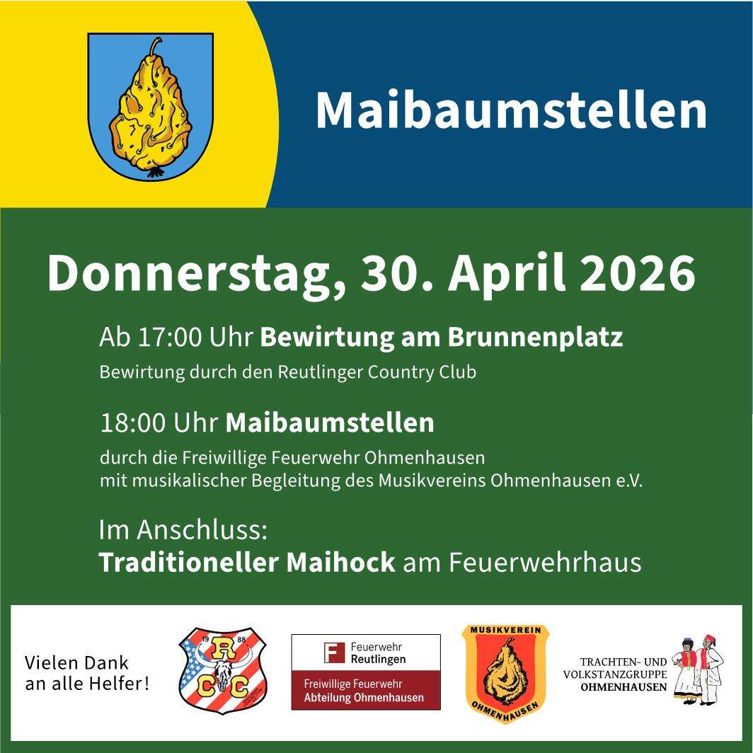| Do. 30.04.2026 | 16:00 Uhr | Maibaumstellen am Brunnenplatz Ohmenhausen |